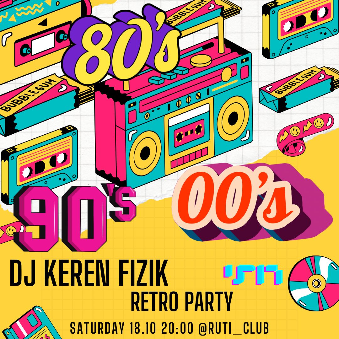 Join DJ Keren Fizik for an unforgettable 80's, 90's, and 00's Retro Party! Get ready to dance the night away at Ruti Club.