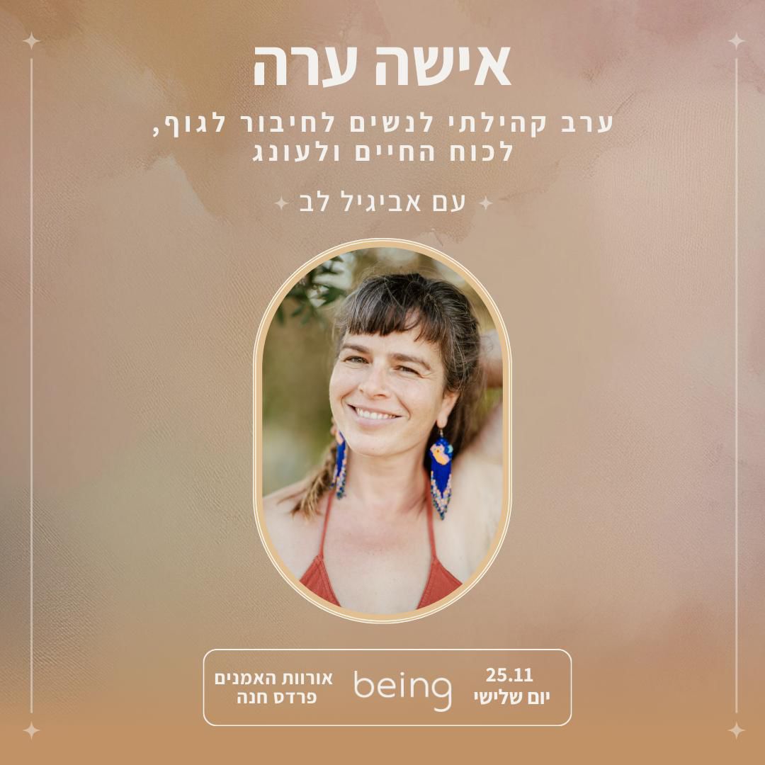 ערב קהילתי לנשים לחיבור לגוף, לכוח החיים ולעונג.עם אביגיל לב.