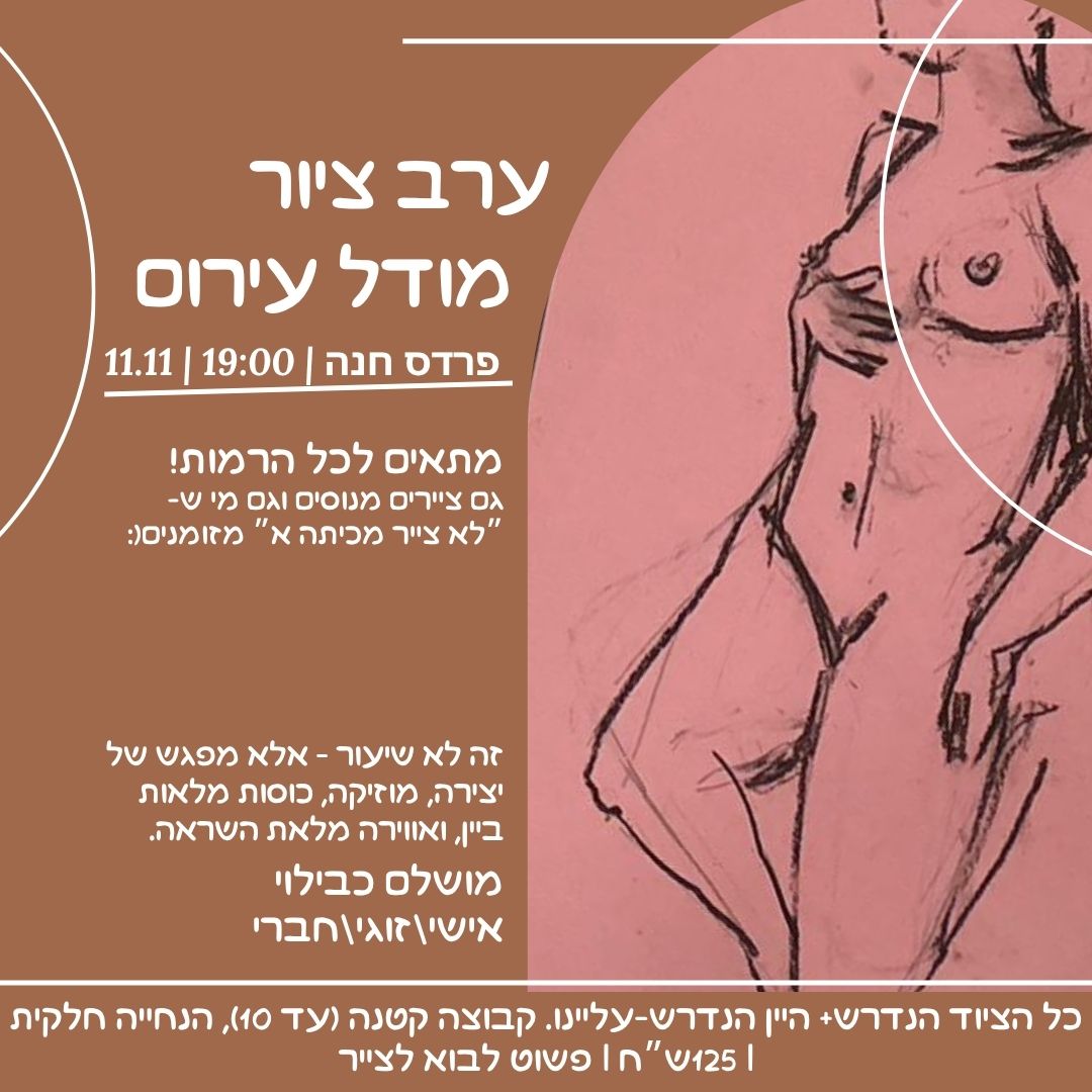 היי, אני מזמינה אתכם.ן ערב ציור מודל עירום יום שלישי 11.11 .