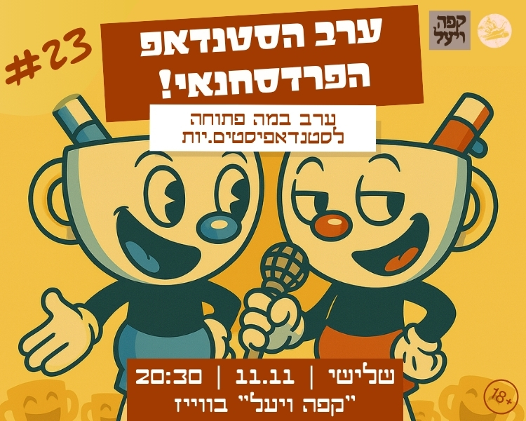 ערב הסטנדאפ הפרדסחנאי חוזר לסיבוב ה-23 ☕🎤 ואחרון לעונה זו!