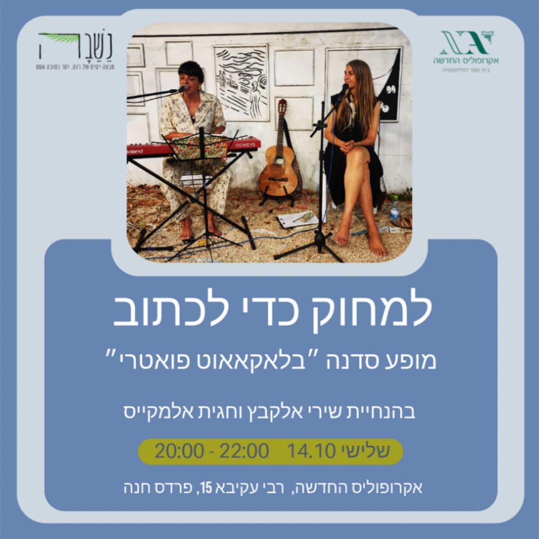 סדנת כתיבה אינטואיטיבית יצירתית בליווי מוסיקלי, שירה ואימפרוביציה.